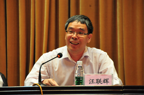 材料院院长汪联辉首先致辞。首先,汪院长对在座所有2014级新生的加入表示热烈的欢迎。随后,汪院长向在座的所有老师和学生介绍了IAM团队发展重要里程碑,创新团队的建设,重大项目、基金承担情况,科技创新成果,科教结合协同育人体系以及人才培养成果等材料院的现状。汪院长告诉同学们要“标新立异,开拓创新。要努力成为一个创新型人才”,因为“一个人是否具有创造力是一流人和三流人的分水岭”。汪院长还指出同学们要学会思考、学习,要长存感恩之心。最后,汪院长以“天行健,君子以自强不息;地势坤,君子以厚德载物”为结语勉励在座所有新生,并衷心祝愿所有的同学在南邮材料院取得更大的成就。