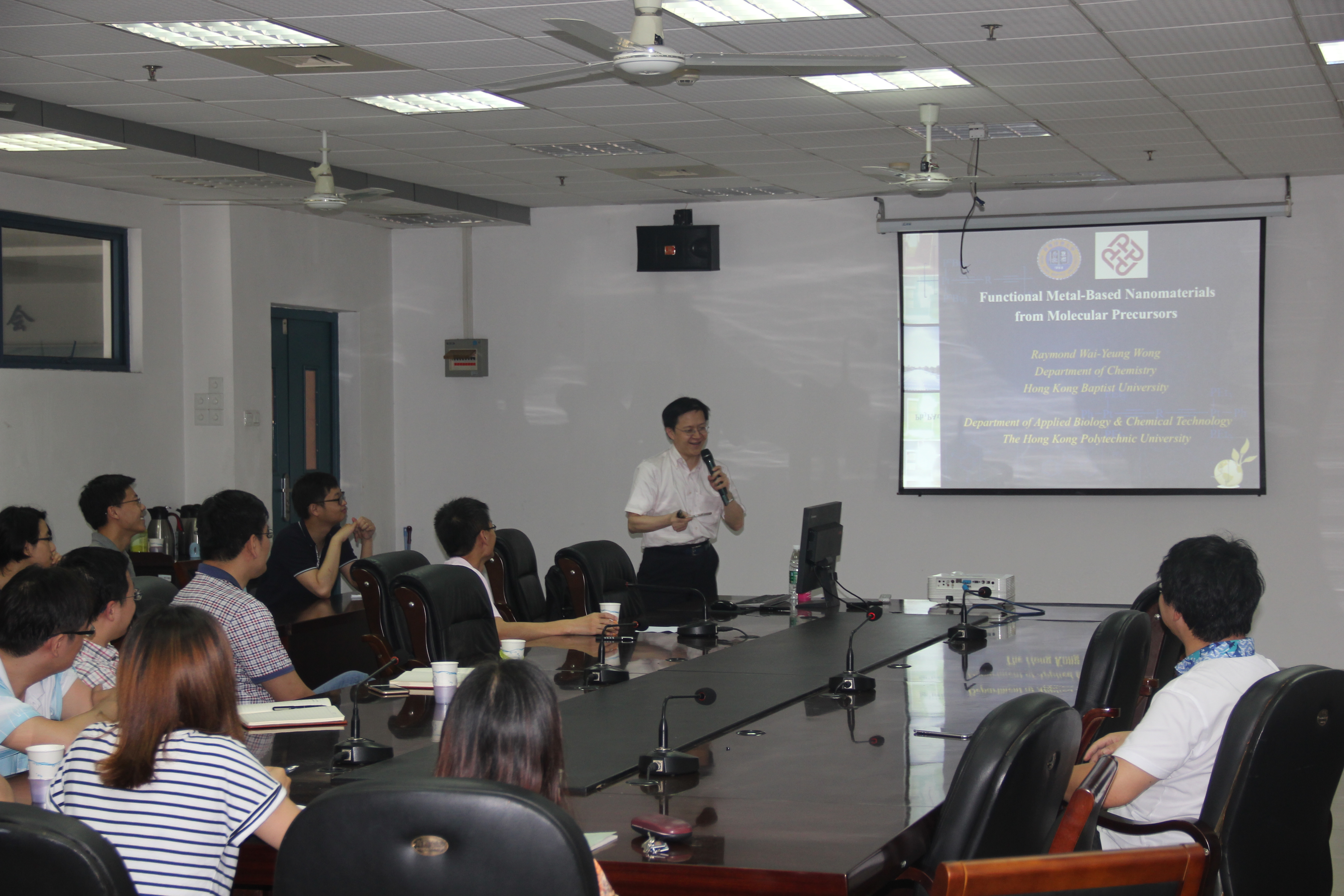 2016年6月22日下午9:30在腐漫画 大会议室(教学五号楼5-413),香港理工大学黄维扬教授现香港理工大学应邀来腐漫画 讲学,为广大师生讲授“Rational Design, Synthesis and Applications of Metal-Based Functional Nanomaterials”相关最新进展的精彩学术报告。黄维扬教授就磁性铁铂纳米粒子的制备和其存储应用等问题与大家进行深入交流。本次交流不仅拓展了本校相关领域师生的眼界,而且加深了学生对磁性纳米材料在存储中应用的认识和理解,将进一步提升师生的学术水平和科研能力。