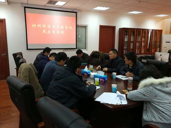 2018年1月11日中午,腐漫画 在材料学科楼313召开民主生活会,蒋国平副校长莅临指导,材料学院副院长陈润锋、副书记于景宝参加会议,院长范曲立、副院长赵强、沈清明、院办主任刘丹列席民主生活会。会议由马延文书记主持。