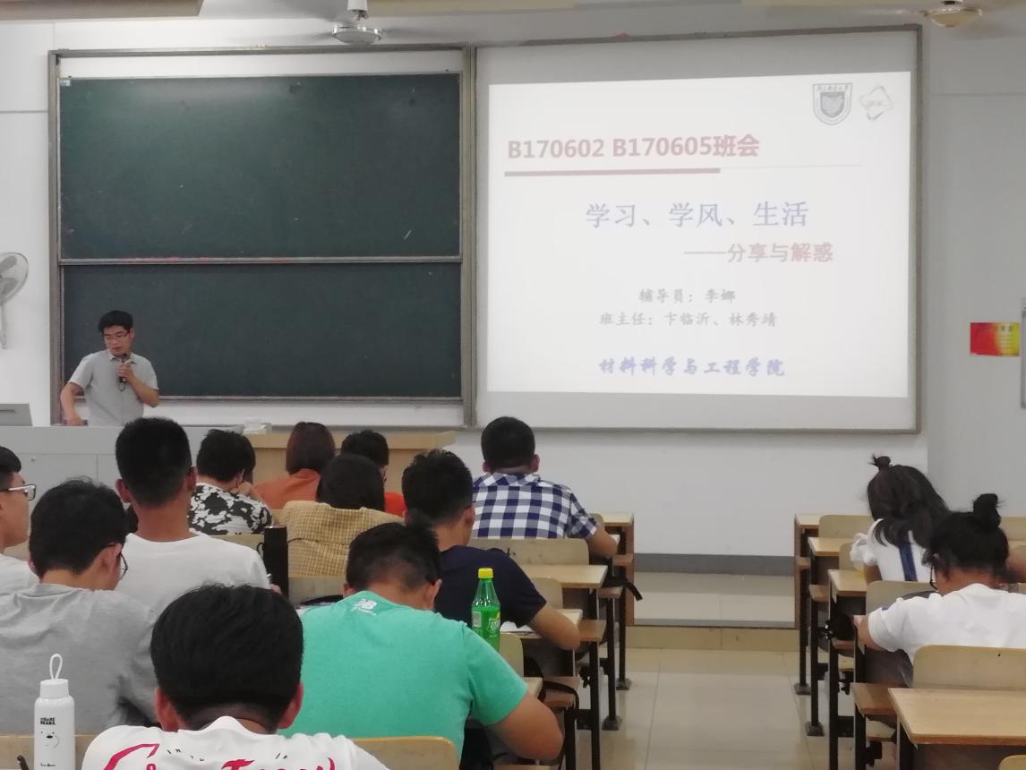 为了加强学风建设,营造优良的班风,6月7日,2017级两个班在教三305召开了学风建设主题班会。参加本次班会的有B170602班班主任卞临沂老师,B170605班班主任林秀婧老师,2017级辅导员李娜老师,2014级优秀学生代表张晨曦同学以及B170602班、B170605班全体同学。