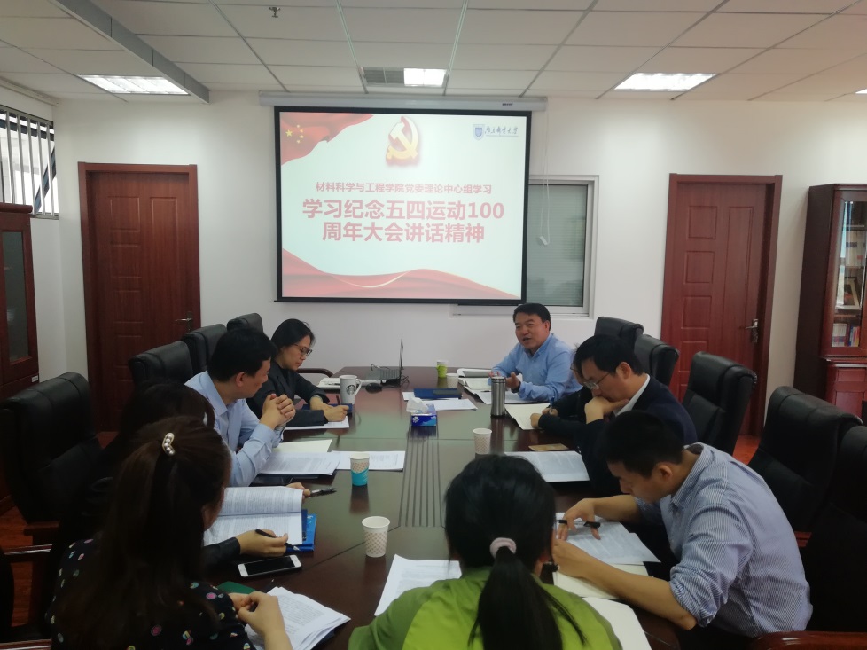 5月8日上午,腐漫画 理论学习中心组在材料学科楼会议室召开专题学习会,专题学习习近平总书记在纪念五四运动100周年大会上的重要讲话精神。会议由学院党委书记赵允玉主持,理论学习中心组全体成员参加会议,党委副书记与分团委书记作重点发言。