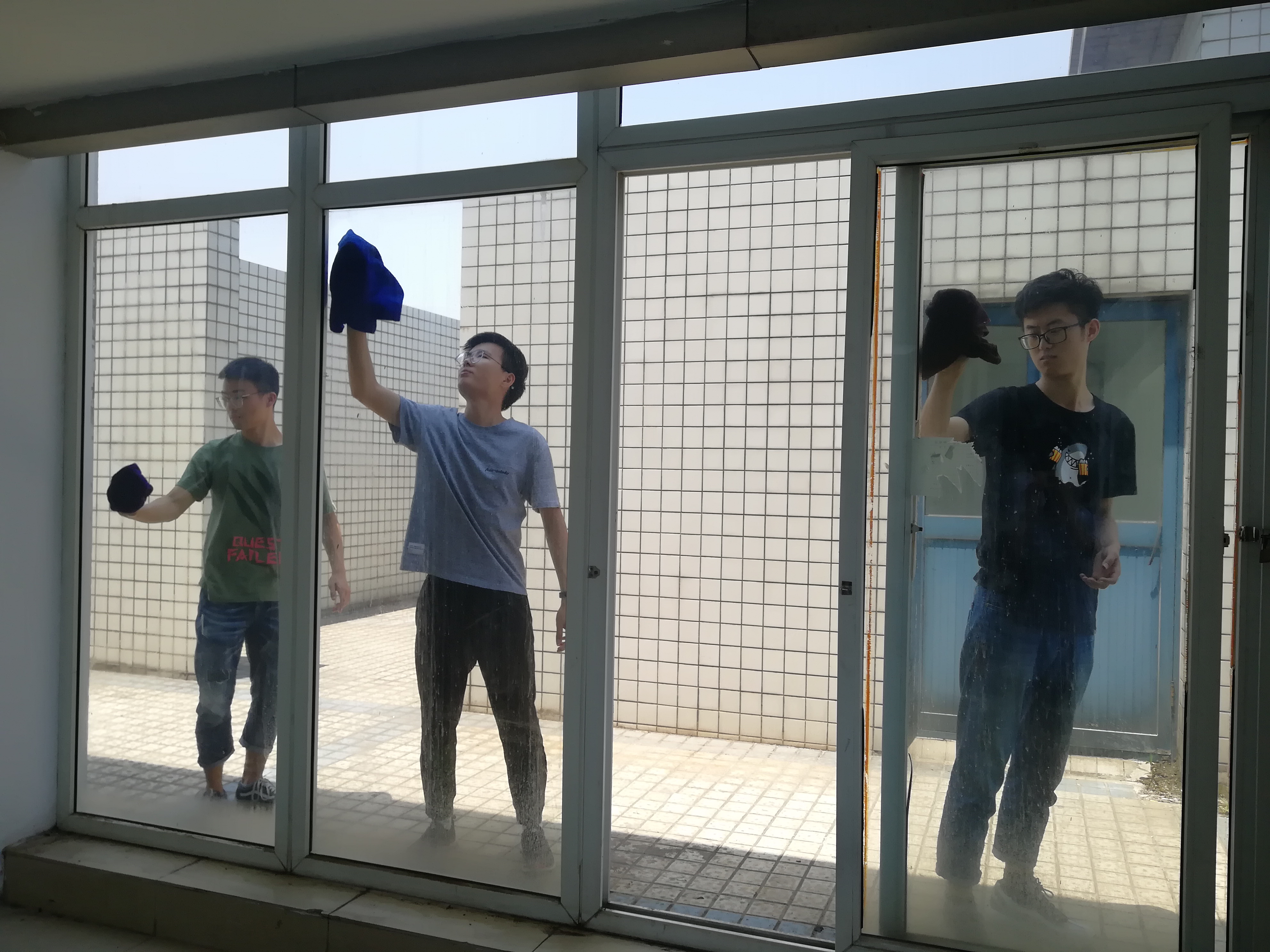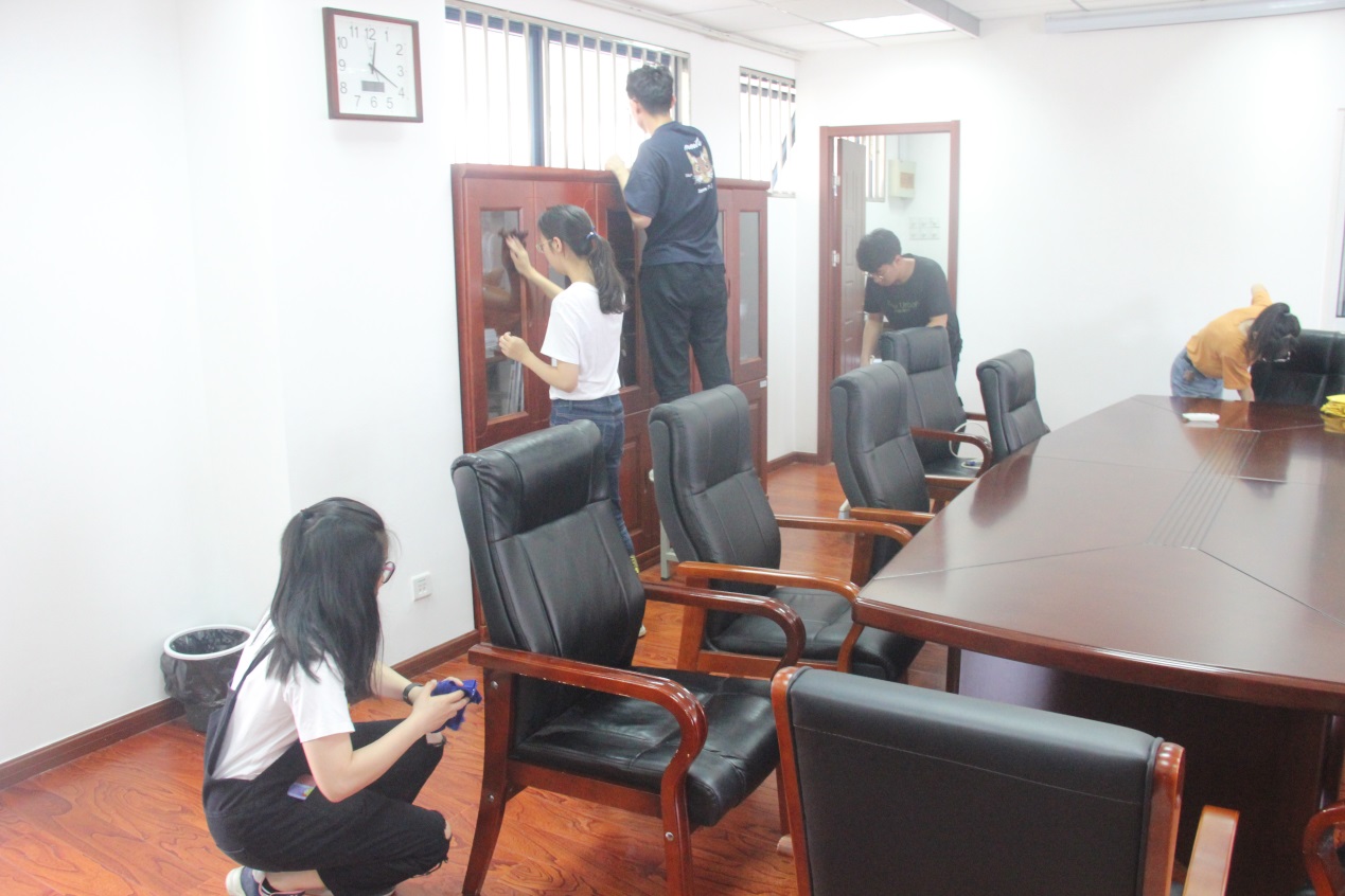 6月3日中午11时,“担一份责任”党员义务卫生清扫日活动如期举行,由学工党支部书记、2015级辅导员赵赫男带领的学工党支部全体共计40余名党员在教5楼集合,开展了本学期教5楼的清洁工作。本次清洁的地点为教5楼4间会议室和教师活动室,学生党员分为5组开展工作,经过近一个半小时的打扫,室内环境卫生得到了较大的改善。