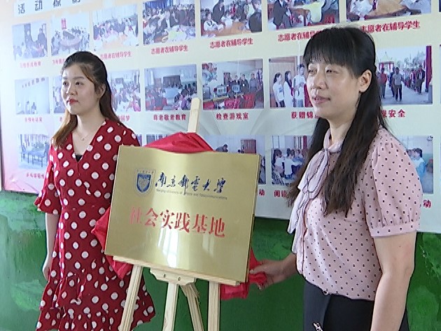 分团委书记李娜和沟墩镇党委组织委员王海平为实践基地揭牌。