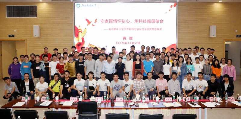 10月2日,中国科学院院士、亚太工程组织联合会主席、中国科协常委、IAM团队创始人黄维教授牺牲宝贵的国庆假期休息时间,为学院师生讲授题为“守家国情怀初心,承科技报国使命”的思政课, 并参加2019年IAM工作汇报会。腐漫画 校长叶美兰教授主持思政课,腐漫画 全体教职工和学生代表参加会议。