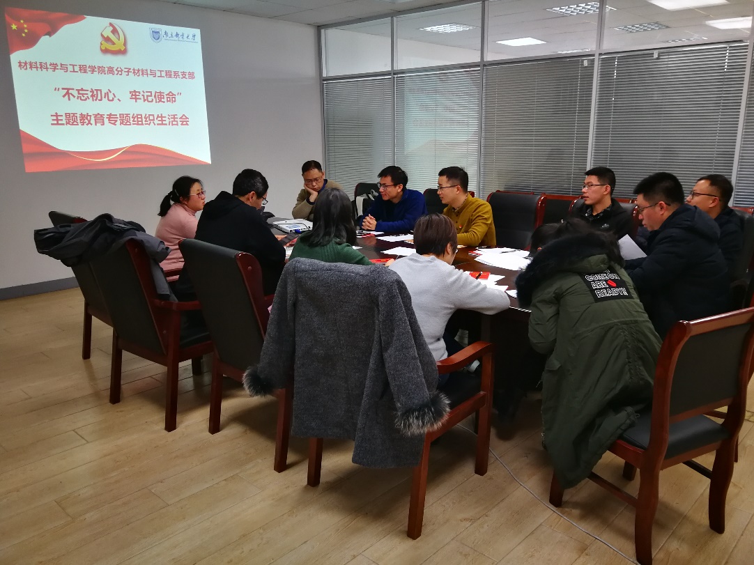按照学校“不忘初心、牢记使命”主题教育工作部署,结合《腐漫画 党委“不忘初心、牢记使命”主题教育专题组织生活会实施方案》的通知要求,12月9日下午,腐漫画 高分子材料与工程系党支部召开专题组织生活会,会议由党委委员、支部书记黄艳琴主持。