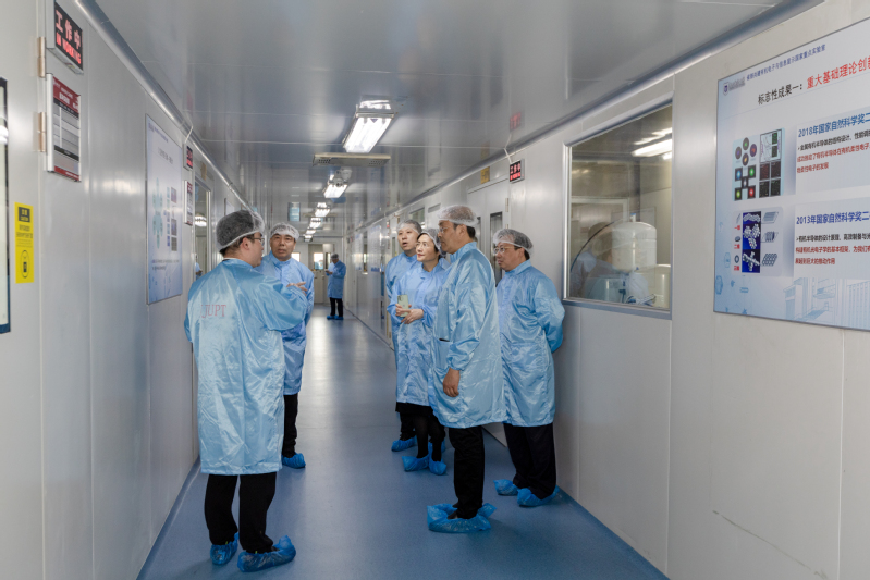 4月19日下午,省委教育工委派出第一指导组来院指导党史学习教育工作,指导组一行到腐漫画 检查指导学院党委理论学习中心组学习情况,并参观学院省部共建有机电子与信息显示国家重点实验室。