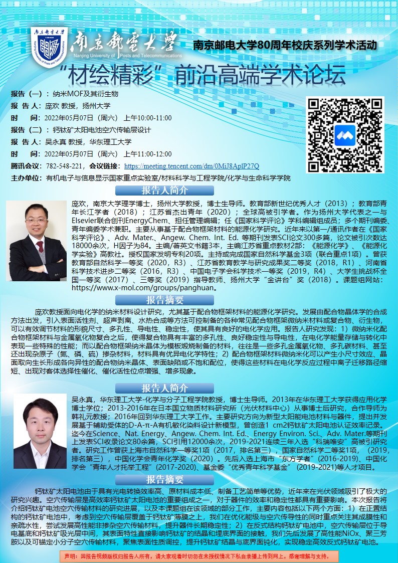 扬州大学庞欢教授&华东理工大学吴永真教授学术报告