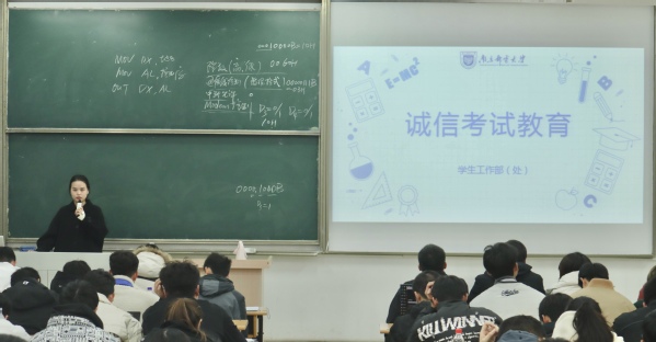 本次大会主要包括两个内容,一是对即将到来的全国大学生英语四级考试,侍老师着重强调了考前的准备工作、考试时的要点和考场纪律这一红线。二是关于期末考试的诚信教育,详细地罗列了腐漫画 的相关政策并分享一些案例,号召大家务必遵守考场纪律,最后组织大家签订诚信考试承诺书并进行宣誓。通过本次大会,引导学生深刻理解诚信考试的重要性,起到一定的警示作用。