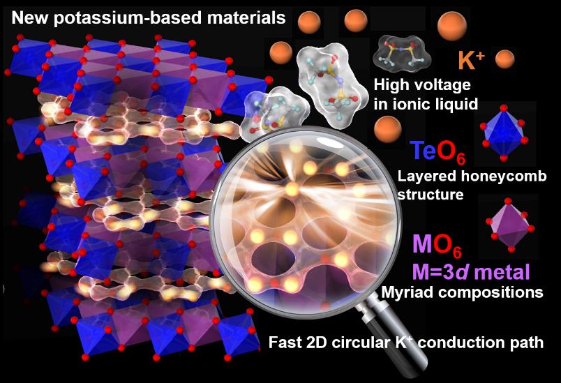 Rechargeable potassium-ion batteries with honeycomb-layered tellurates as high voltage cathodes and fast potassium-ion conductors,Nature Communications, 2018, 9, 3823, //doi.org/10.1038/s41467-018-06343-6;