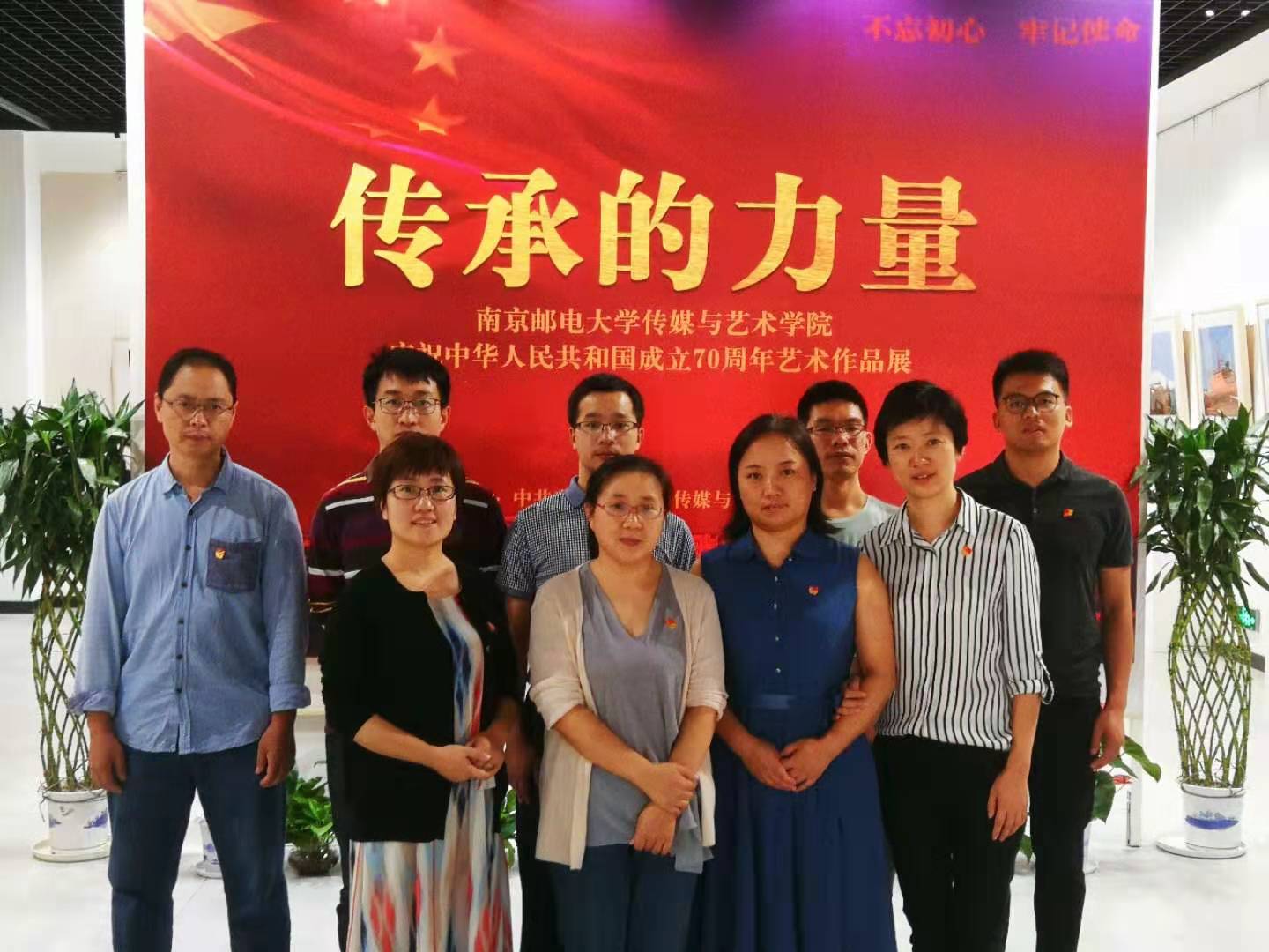2019年9月19日,腐漫画 传媒与艺术学院庆祝中华人民共和国成立70周年艺术作品展《传承的力量》在文科楼一楼展厅盛大开幕。次日,腐漫画 高分子系支部的党员老师便慕名集体参观了该展览。这次艺术作品展分为一路“邮”你、追梦中华、责任担当、艺“邮”心生四个篇章,将社会主义核心价值观的要求、民族复兴的责任与担当、做人做事的基本道理等要素融入渗透到作品中,艺术地呈现了弘扬崇高革命精神,传承南邮红色基因的主题。