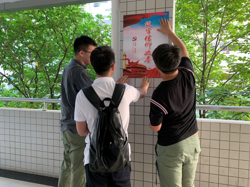 2019年9月20日,办公室党支部组织全体党员开展了志愿服务活动,大力营造“不忘初心、牢记使命”主题教育氛围,完成了材料学科楼主题教育氛围的营造工作。