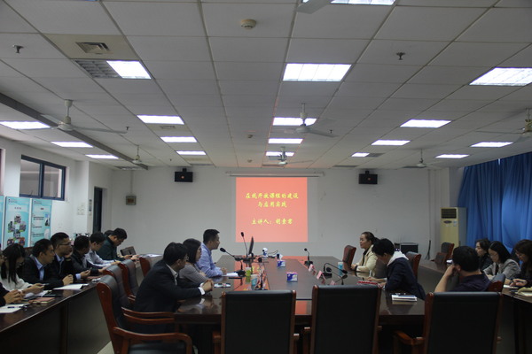 随后,胡老师开展了题为“在线开放课程的建设与应用实践”的讲座,分享了腐漫画 《网络技术与应用》MOOC课程建设及使用的经验做法,主要分为课程基本情况、在线开放课程建设、混合式教学实践、翻转课堂教学实践以及体会和建议五个方面。胡老师在报告中首先介绍了MOOC课程建设过程主要包括课程总体规划、知识点的拆分、PPT的设计、课程文案、视频的拍摄和制作、作业与测验等方面,其中对知识点的拆分、视频拍摄前脚本的编写等作了重点分析;同时对该课程中视频、单元测验、互评作业等课程资源的设置作了详细介绍。其次,对MOOC课程建成后在实际教学中几种不同的应用模式分别作了介绍,并从实际操作层面详细介绍了腐漫画 是如何使用MOOC课程进行校内SPOC实践的。最后,分别从学生和教师两个不同的角度对课程建设与实践进行了总结,她指出,MOOC课程的建设关键在于教师对课程投入的热情和参与的积极性,同时,学校也应给予相应的政策支持。报告结束后,与会老师就相关问题与胡老师进行了热烈的交流与讨论。