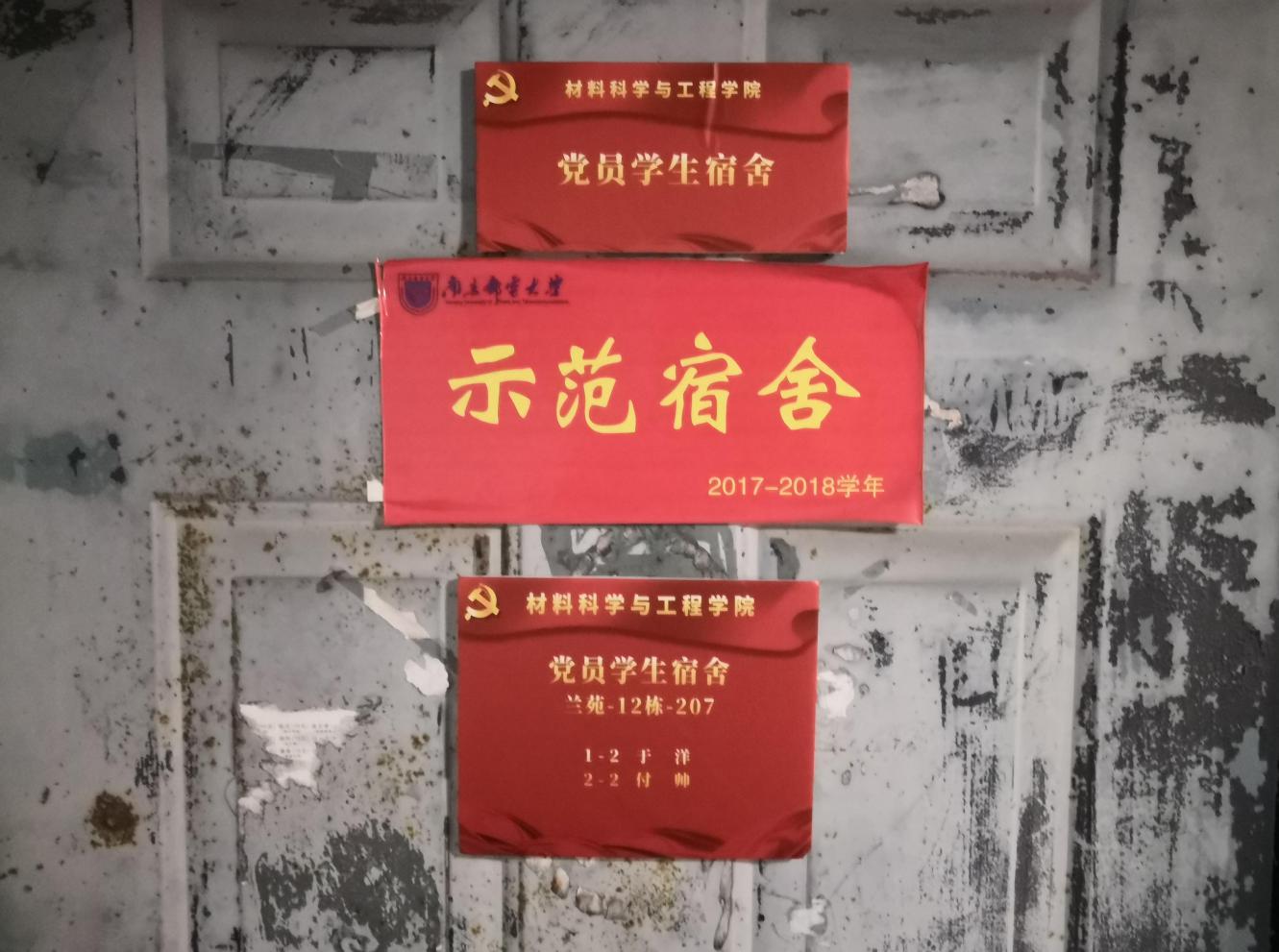 与此同时,为深入贯彻落实党的十九大精神,加强基层党组织建设,切实做好学生党建和思想政治教育进宿舍工作,充分发挥学生党员的先锋模范作用。2019年12月12日学工党支部全体支委为学生党员宿舍挂牌,对于每个学生党员来说,“党员宿舍”不仅仅是一种荣誉,更是一种激励和督促。一方面,对学生党员提出了更加严格的要求,要求学生党员要时刻注意自己的言行举止,自觉接受同学监督,以实际行动彰显大学生党员在日常学习生活中的先锋模范带头作用。另一方面,它进一步增强了学生党员的党性意识和奉献意识,要求学生党员树立良好的工作形象,牢记立德树人的初心和使命,积极为广大同学服务,努力营造积极健康的校园文化氛围。