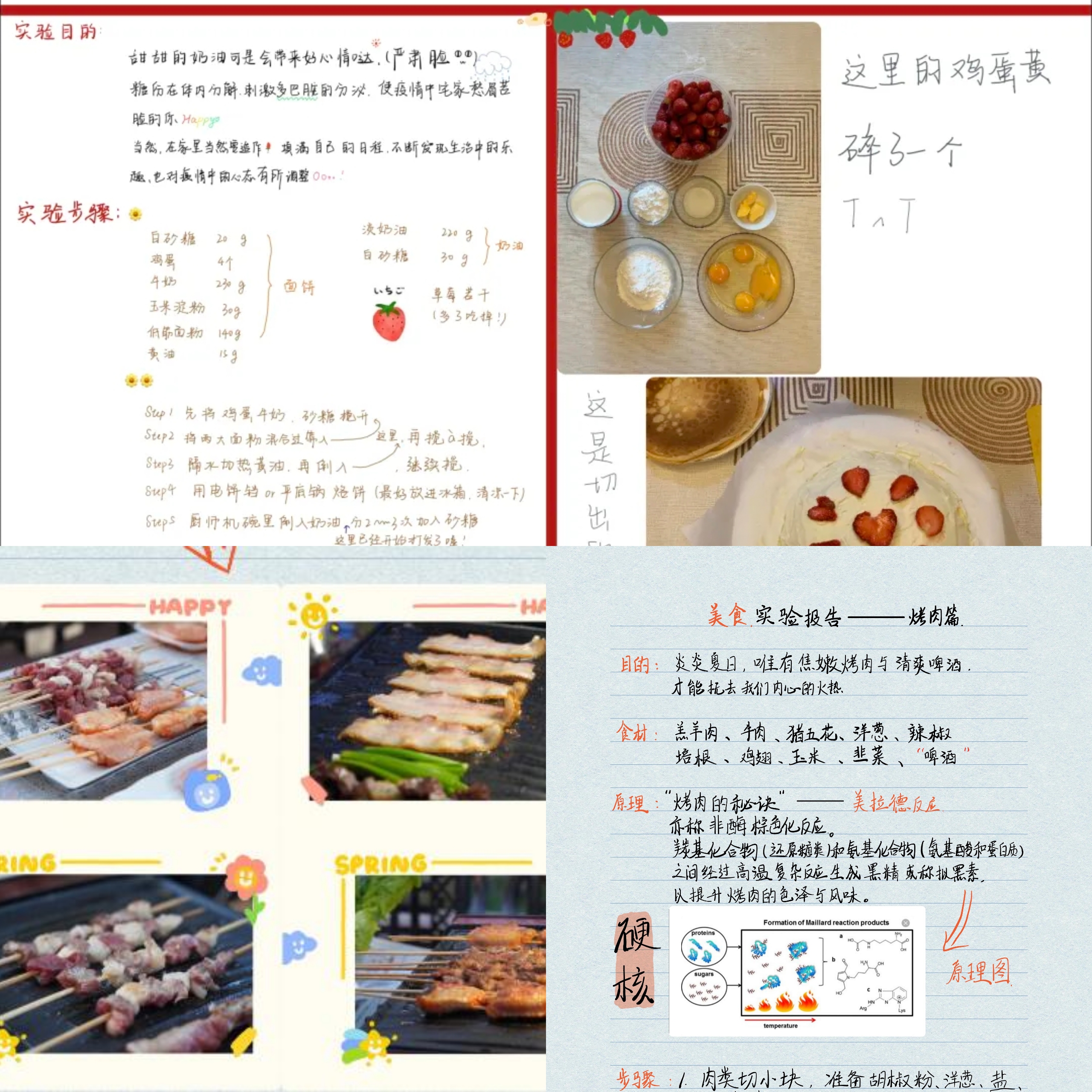 “来自于山川湖海,囿于厨房与爱”,由于疫情原因,同学们无法深入实验室开展实验项目,然而制作居家美食可以从另一个角度学习化学知识,在厨房里继续我们的实验。活动第二轮采取美食实验报告+视频记录的形式,以严谨科学的态度,融合当代大学生天马行空的想象力,在三尺“灶台”响应“停课不停学”的理念。同学们即使呆在家中,也亲身体会到科学给生活带来的改变。