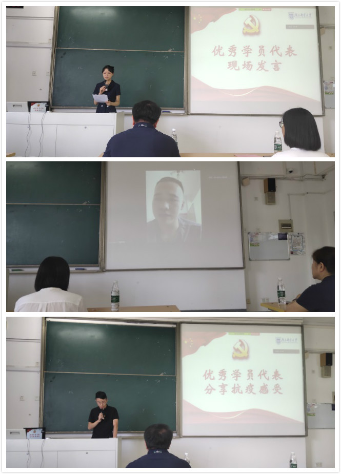 6月8日,培训班举办结业典礼,73名学员顺利结业,评选出23名优秀学员,优秀学员研究生代表王路璐、本科生代表董林霖(线上)发言,畅谈学习感受。学院关工委、特邀党建组织员倪静虹老师参加结业典礼,她表示听了优秀学员的发言深受感动,作为积极分子,不但认真参与学习,更有部分积极分子在疫情防控的大背景下,还积极为国家防控工作积极贡献自己的力量。希望各位积极分子在今后也应注意发挥先锋模范和旗帜的作用,争做优秀共产党员。