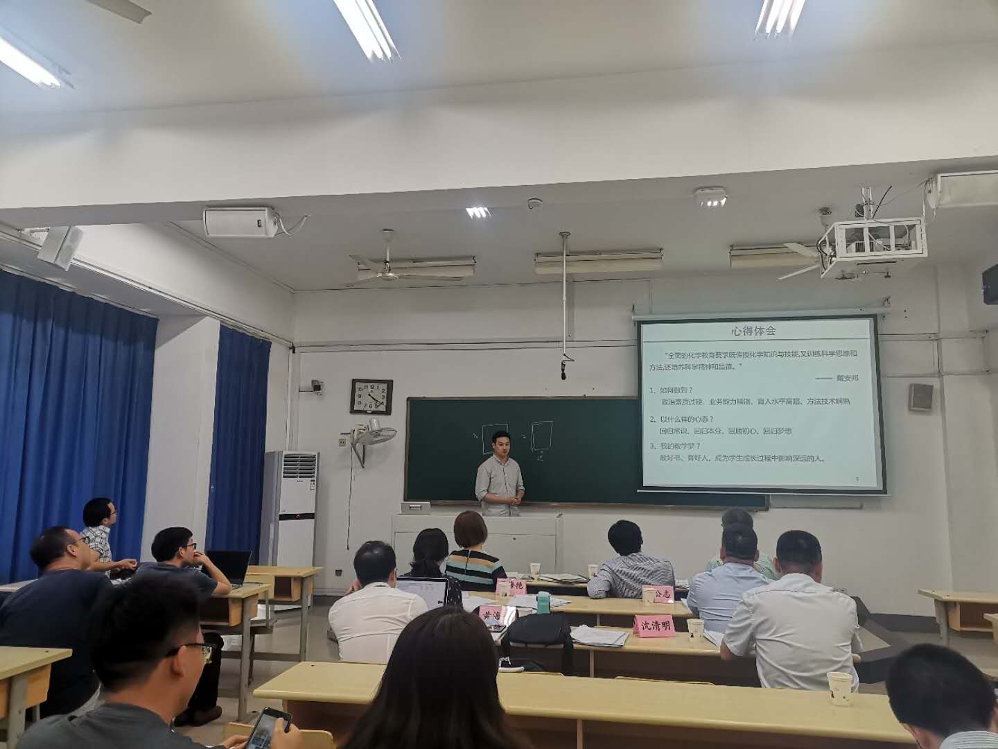 腐漫画 共有六位青年教师参加了本次汇报,他们结合自己参与线上线下教学观摩、教学培训、学期中试讲、课后辅导答疑等各类教学活动进行详细汇报。参加结项验收的三位老师还讲授了一个完整的教学节段,进行课堂教学能力的展现。