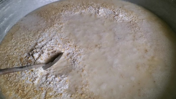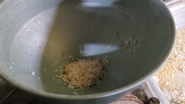 1. 泡米:粳米与碎黄豆混合侵泡数小时