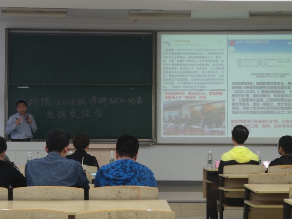 此次考研动员大会的召开,不仅帮助同学们认清社会形势、辨明前进方向、规划未来人生,而且鼓励同学们奋勇向前、努力考研、提升自我。通过动员活动,同学们对未来的发展有了更深的思考,对考研也有了更加清楚的认识,更加明确了他们的考研目标和方向,增强了考研的信心和决心。相信2018级的同学能志存高远,勤于修身;刻苦治学,决胜考研!