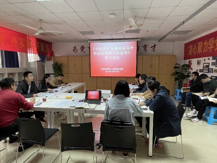 与会学习者进行了讨论。大家认为,要把学习教育宣讲《条例》作为近期教师政治理论学习的内容,教育引导党支部和广大党员师生领会《条例》精神、全面掌握《条例》内容,严格遵守和执行《条例》规定,提高做好高校基层党组织工作的能力本领。要把学习宣传贯彻《条例》作为学院当前一项重要政治任务认真抓好落实。