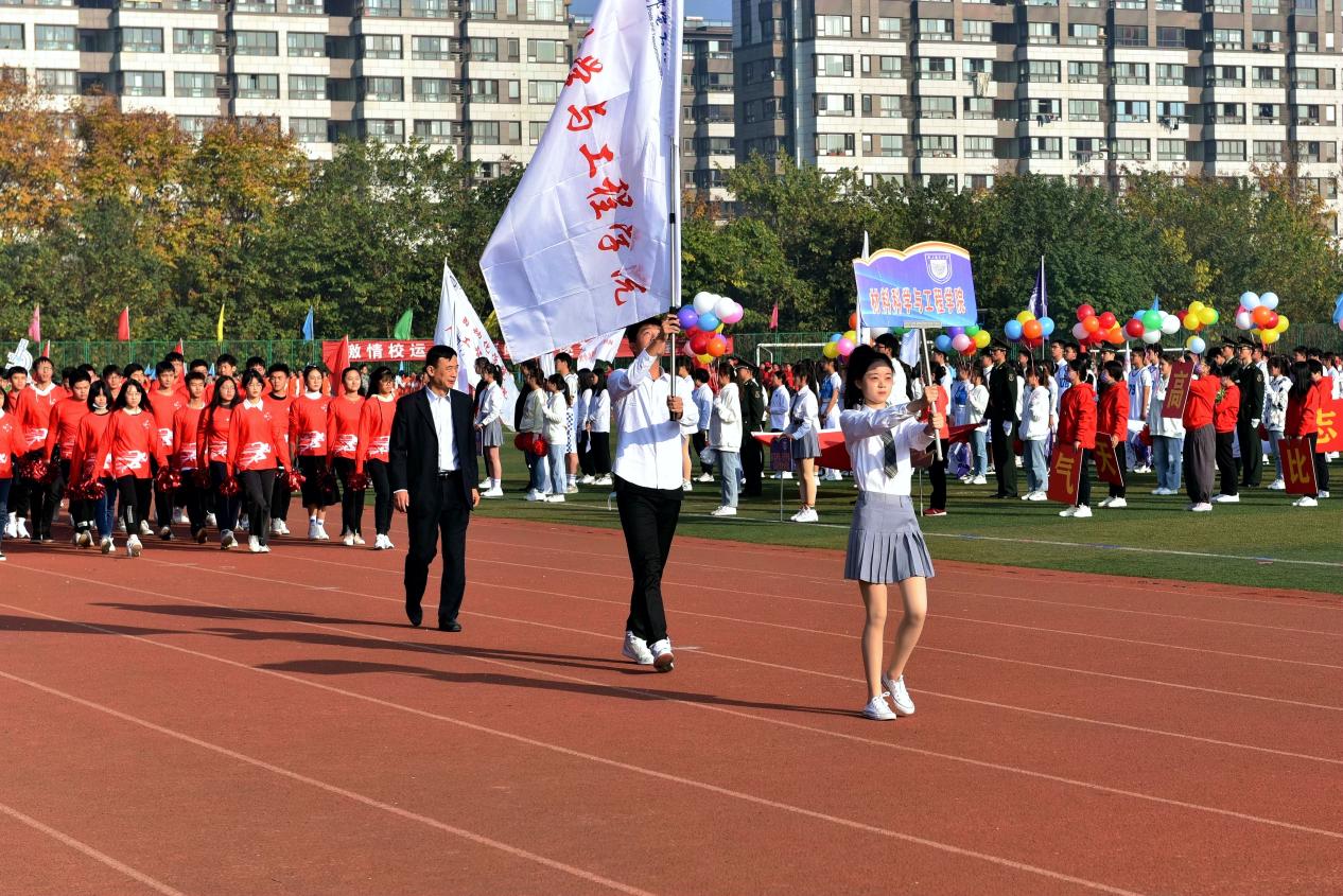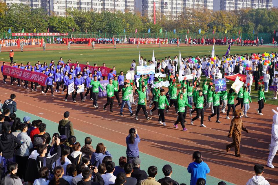 腐漫画 方阵由三个部分组成:本科生方阵、研究生方阵、教工方阵,他们分别身着红、绿、蓝三色的队服,象征着“战邮”红色之魂、“邮电”绿色之新、“信息”蓝色之志。走在方阵最前面的是材料院院长范曲立教授,带领腐漫画 师生将体育精神融入科研与育人。