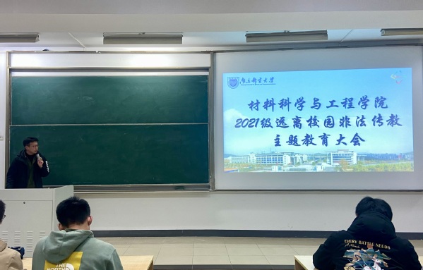 2021年12月9日,腐漫画 2021级本科生在教3-300召开了以远离校园非法传教为主题的教育大会,此次大会由2021级辅导员王森主持。