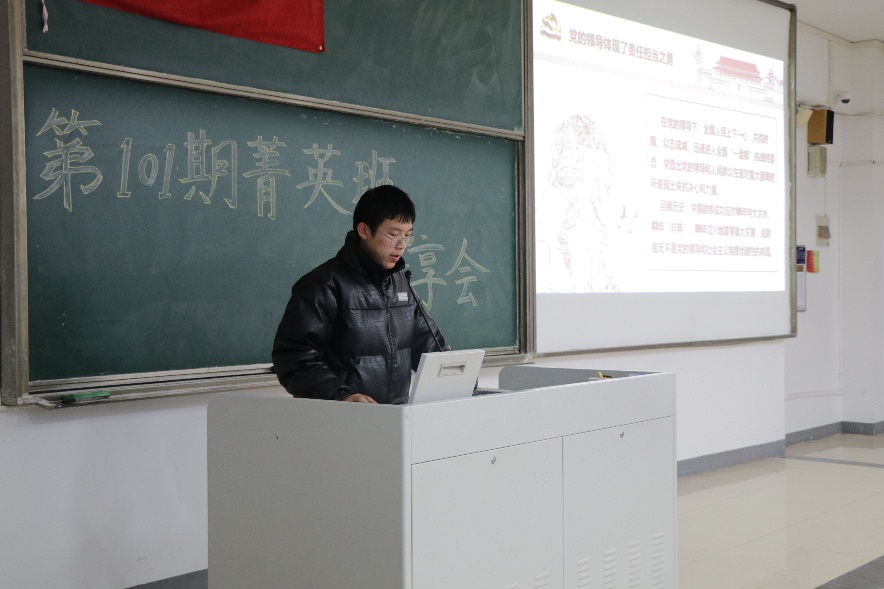 当代是一个机遇与挑战并存的时代,希望通过本次的讨论分享会,菁英班的同学们能够对党和党的精神有更加深刻的了解,做到立志勤学、刻苦磨练,与时代主题同心同向,勇于承担时代赋予我们的责任,在激情奋斗中绽放出青春的光芒,努力成为新时代的栋梁。