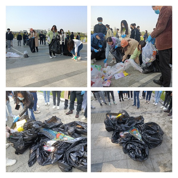 随后,党员志愿者分成四组,带上手套和垃圾袋,老师和同学们一起开始捡拾垃圾。同学们充分发挥了不怕脏、不怕累的精神,认真细致的捡拾着每一件垃圾,大到饭盒、奶茶杯,小到一团纸、一个烟头,草坪卫生得到了明显改善。在一个小时的时间内,大家共捡拾了八大袋垃圾,不仅为广大同学们提供了一个更加清洁的草坪,也向大家传递了环境保护理念,彰显了支部党员吃苦耐劳、无私奉献的精神。