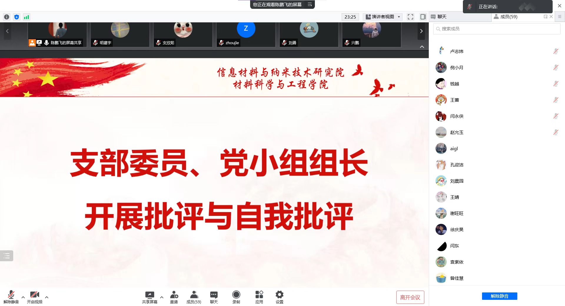 按照学校《关于召开2021年度腐漫画 基层党组织组织生活会和开展民主评议党员的通知》文件要求,3月17日下午,腐漫画 研究生一支部召开2021年度组织生活会,本次组织生活会由党支部书记陈鹏飞主持,研究生一支部全体党员参与本次会议,学院党委赵允玉书记全程参会指导。按照学校防疫工作要求,本次组织生活会采取线上线下相结合的方式召开。