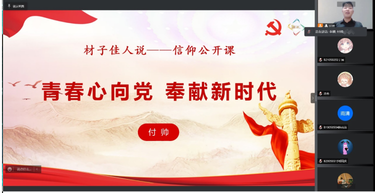 通过举办本次信仰公开课,青年学生们跟随着付帅一起回顾了他的成长故事,感受到他作为一名青年党员的责任和担当。作为一名新时代青年,同学们也更加坚定要认真学习,努力工作,发扬不怕苦难的精神,坚定理想信念,练就过硬本领,矢志艰苦奋斗,在伟大的实践中,展现出青春激昂的风采,以实际行动迎接党的二十大的胜利召开。