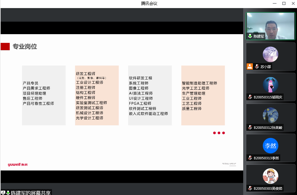 材料化学系主任苏邵教授主持,系副主任周馨慧和B200503班全体同学参加了本次线上报告。