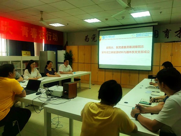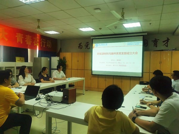 2022年6月1日下午,新能源材料与器件系党支部成立大会在教五101党员活动室召开,学院党委书记赵允玉,党委委员、副院长陈润锋,新能源材料与器件系全体党员参加成立大会。会议由新能源材料与器件系系主任黄镇东主持。