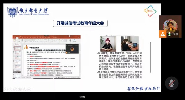 随着各科课程进入尾声,期末考试也悄然而至,为了端正全体学生的考试态度,杜绝考试作弊现象的发生,形成良好的诚信考试氛围,2022年5月31日腐漫画 召开了以“做诚信学生,建诚信考场”为主题的线上年级大会,2020级全体本科生及2020级辅导员徐磊老师共同参与,本次会议由徐磊老师主持。