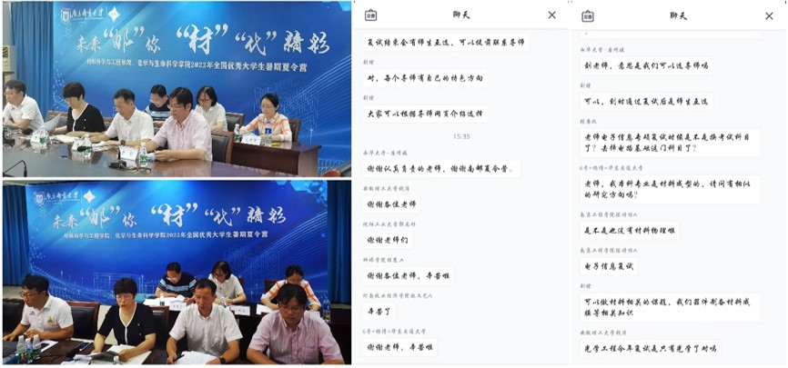 接着,由刘绪老师主持师生交流环节,腐漫画 党委吕蔷蔷副书记、陈淑芬副院长、冯晓苗教授、宋春元教授,化学与生命科学学院党总支张建平副书记、苏邵副院长与营员们亲切互动、深入交流,就营员们提出的研究方向、考研初复试、招生录取比例、师生互选、出国交流、奖助学金、住宿环境、科研平台等问题一一作了答疑解惑。