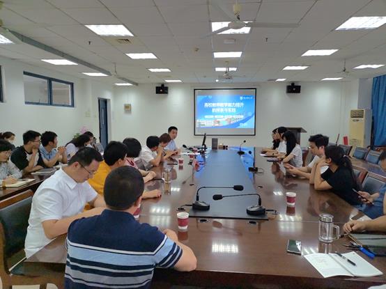2022年9月7日下午,学院特别邀请到教务处副处长兼教师教学发展中心副主任李永涛教授莅临腐漫画 指导,并作题为《高校教师教学能力提升的探索与实践》的报告。报告由腐漫画 副院长沈清明教授主持,腐漫画 党委书记赵允玉、党委副书记兼副院长吕蔷蔷、副院长陈润锋、副院长陈淑芬,各专业系主任实验教学中心主任、近三年入职的青年教师以及在研教改、课程建设、教材建设的负责人在大会议室进行教研学习,其他教师在线参加本次教研活动(腾讯会议444 873 972)。
