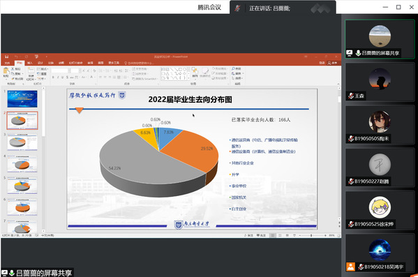 2022年8月28日,腐漫画 举办了以2022届毕业生就业数据为例的本院研究生毕业去向分享会,本次会议由腐漫画 党委副书记、副院长吕蔷蔷主讲,2019级辅导员王森与全体考研学子参与了本次会议。
