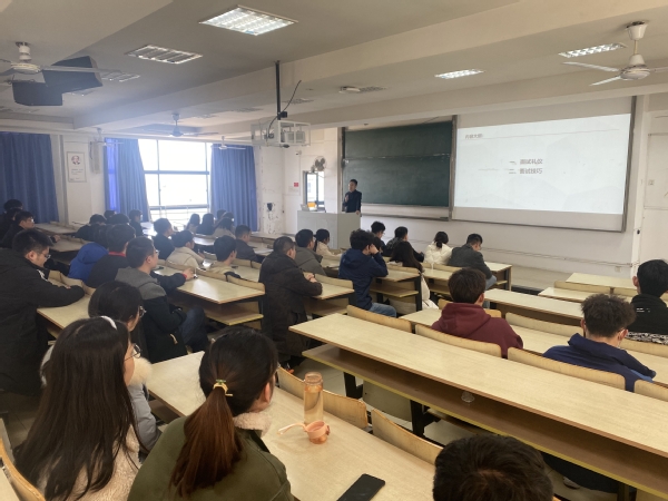 刘老师首先为同学们讲解了职场礼仪相关知识,从服装衣着,妆容妆貌,仪表仪容,站姿身形等方面做了详细的介绍,帮助同学们树立职场信心,打造良好职场第一印象。随后,刘老师对面试技巧做了细致的培训讲解,为同学们解读了5种常见的面试类型,并针对不同面试类型做了现场模拟面试,通过对经典面试题的分析解答,进一步提升了同学们的求职能力。