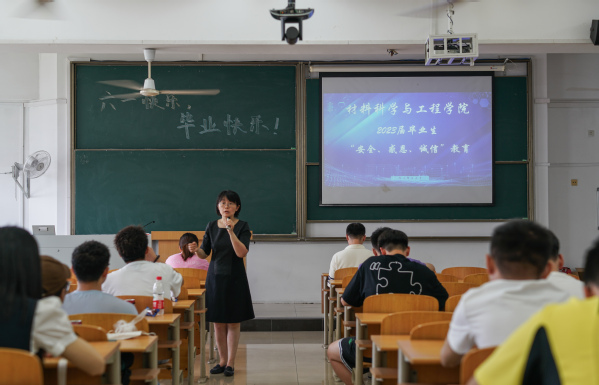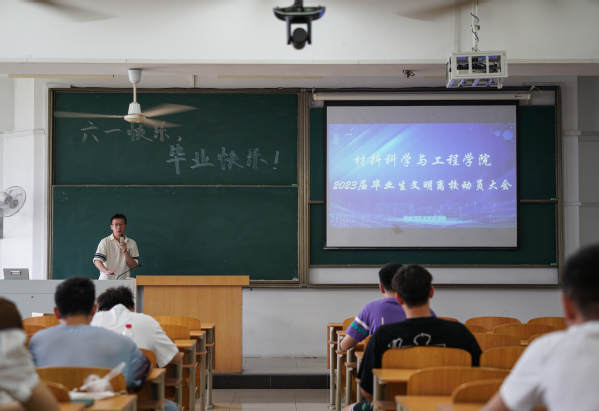 吕蔷蔷副书记首先代表学院对即将毕业的同学们表示祝贺,对大家在校四年期间的表现表示肯定并感谢各位同学四年来对学院、学校各项工作的理解和支持。鼓励同学们要学会适应新的岗位和环境,要把材料院敢于拼搏的精神延续到今后的学习、工作和生活中。强调毕业生应该有社会责任感、加强自律意识,站好最后一班岗,做到安全文明离校。希望全体毕业生高度重视毕业离校各项工作,按照学校规定的进程认真对待毕业前需要学生自己办理的一切事务。努力营造“文明、安全、和谐、有序”离校的良好环境和氛围,确保各项工作有条不紊地开展。