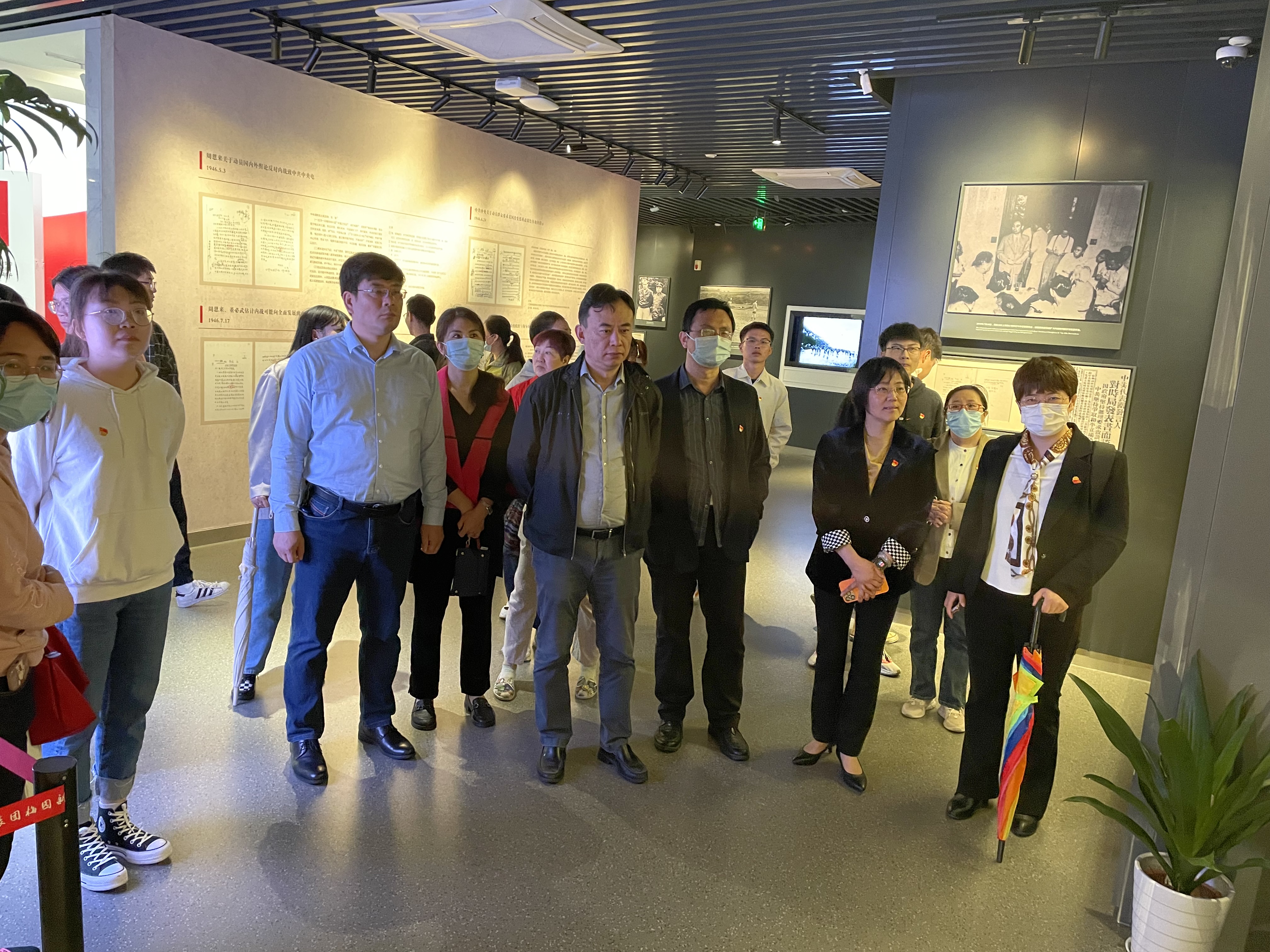 在宣誓之后,大家开始参观学习,史料陈列馆展览了中共代表团梅园新村纪念馆基本陈列,主要展示以周恩来为代表的中共代表团与国民政府和平谈判的历史。展览分列为“为了和平,进行重庆谈判”“进驻梅园,开启南京续谈”“审时度势,力控严峻局面”“扩大统战,开辟第二战线”“竭力奔走,各方斡旋调解”“抵制国大,中共赢得人心”六个单元。