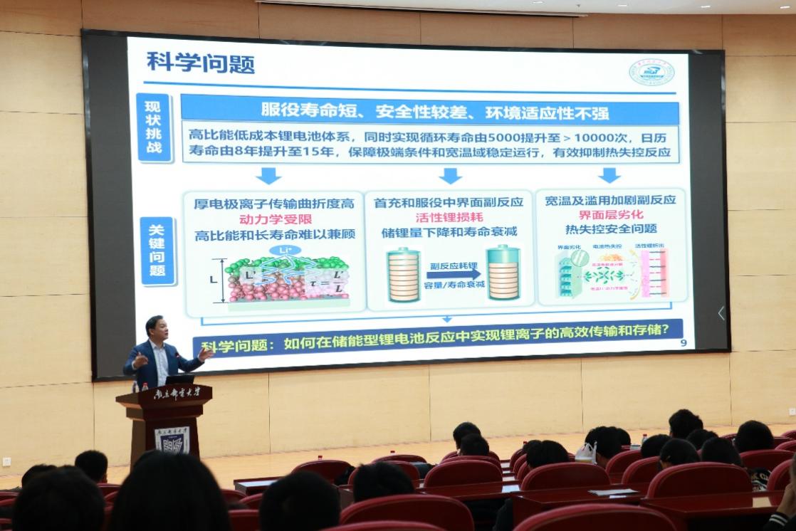 2023年10月26日上午,腐漫画 在图书馆四楼报告厅成功举办了第四期主旨为“新时代、新青年、新材料、新能源、新前沿”的“五新”讲坛。此次讲坛的主讲嘉宾为华中科技大学电气与电子工程学院谢佳教授,讲坛的主题为规模化锂离子电池储能关键技术。新能源材料与器件专业的全体学生和部分专业骨干老师及研究生参加了本次讲坛,本次讲坛由新能源材料与器件系主任黄镇东教授主持。