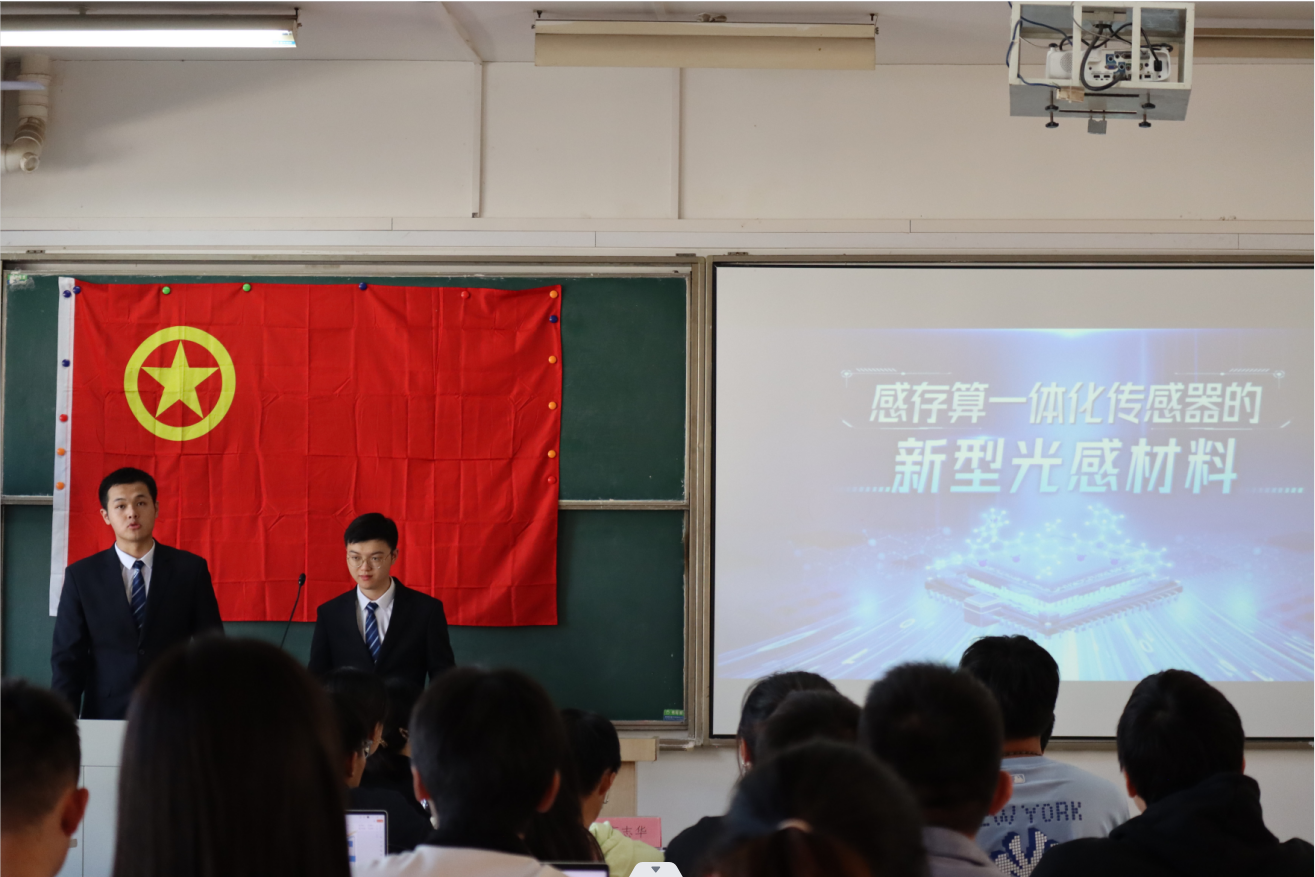 比赛开始前,学院邀请了第十八届“挑战杯”全国大学生课外学术作品竞赛国赛一等奖项目«感存算一体化传感器的新型光感材料»进行了项目展示。