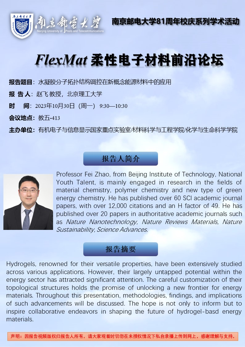 FlexMat柔性电子材料前沿论坛: 北京理工大学 赵飞教授