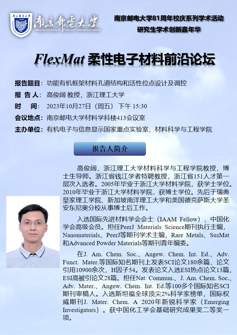 FlexMat柔性电子材料前沿论坛: 浙江理工大学 高俊阔教授