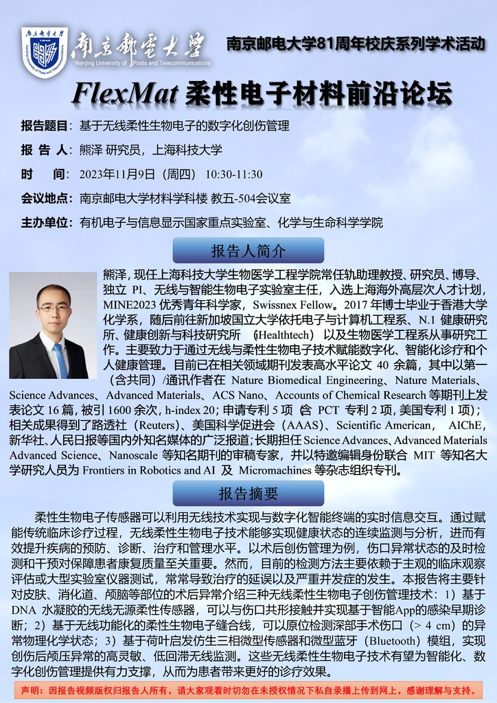 FlexMat柔性电子材料前沿论坛: 上海科技大学 熊泽研究员