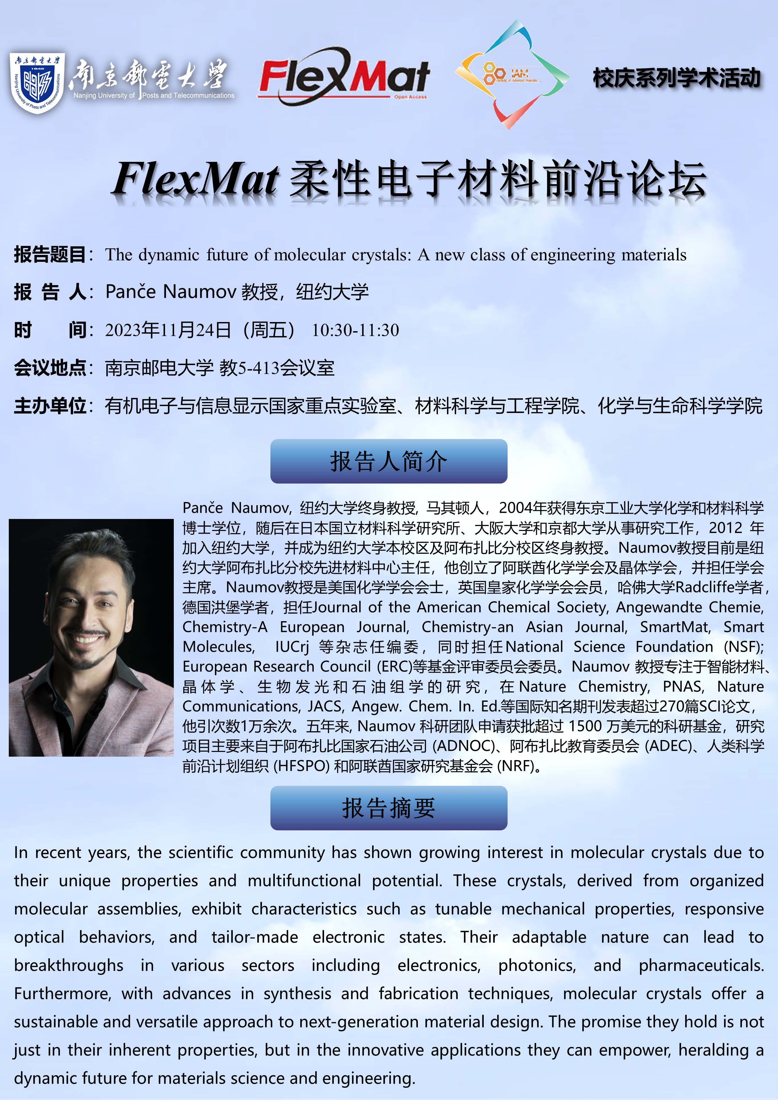 FlexMat柔性电子材料前沿论坛: 纽约大学 Panče Naumov 教授