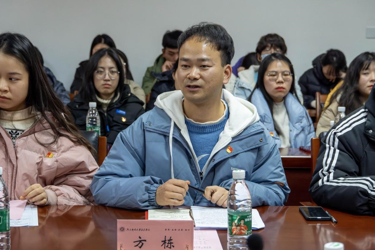 随后,通达学院戎光大队党支部书记毕强、腐漫画 博士生党支部书记方栋以及腐漫画 研究生第一党支部副书记莫千千同志分别就支部党建工作做法、经验、成效,存在的问题以及样板党支部创建等工作进行分享发言,并对未来加强交流合作提出思路和设想。