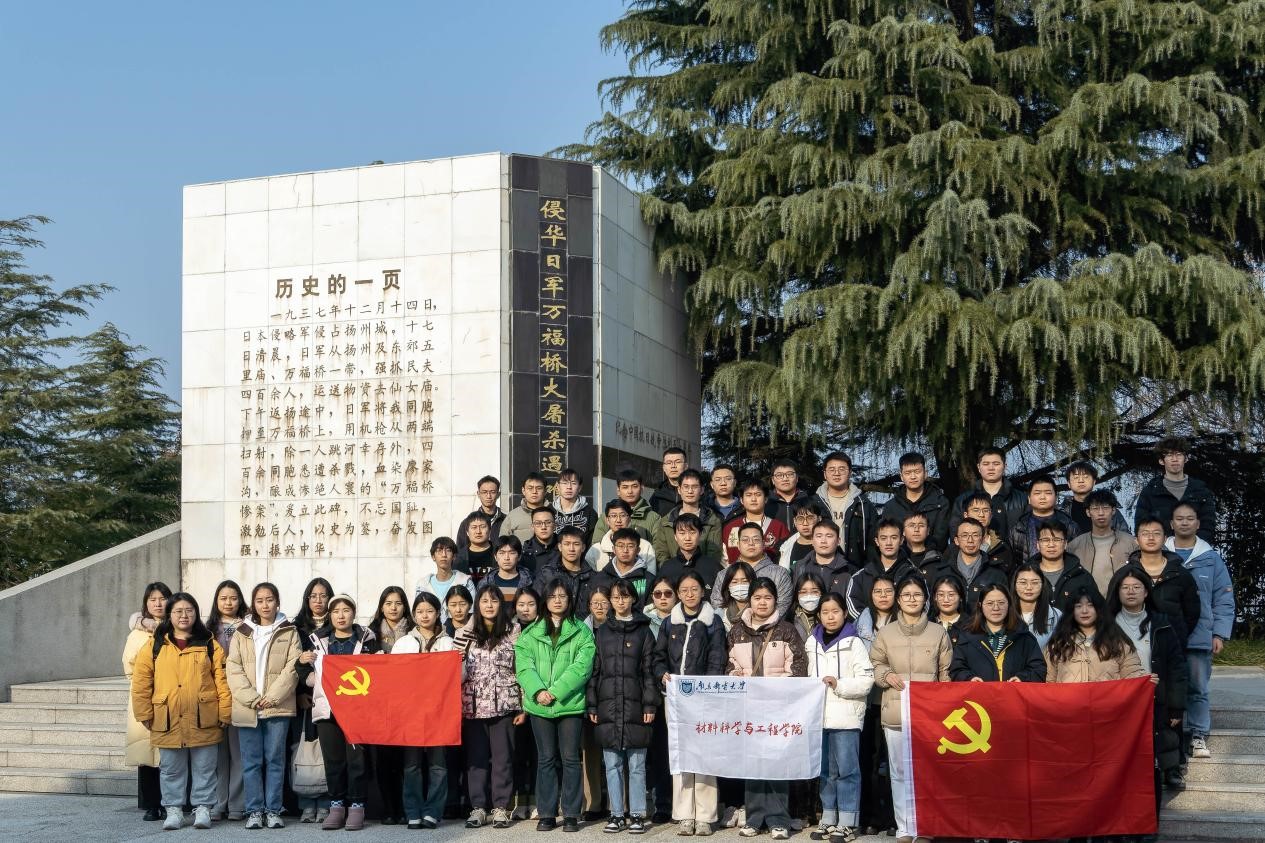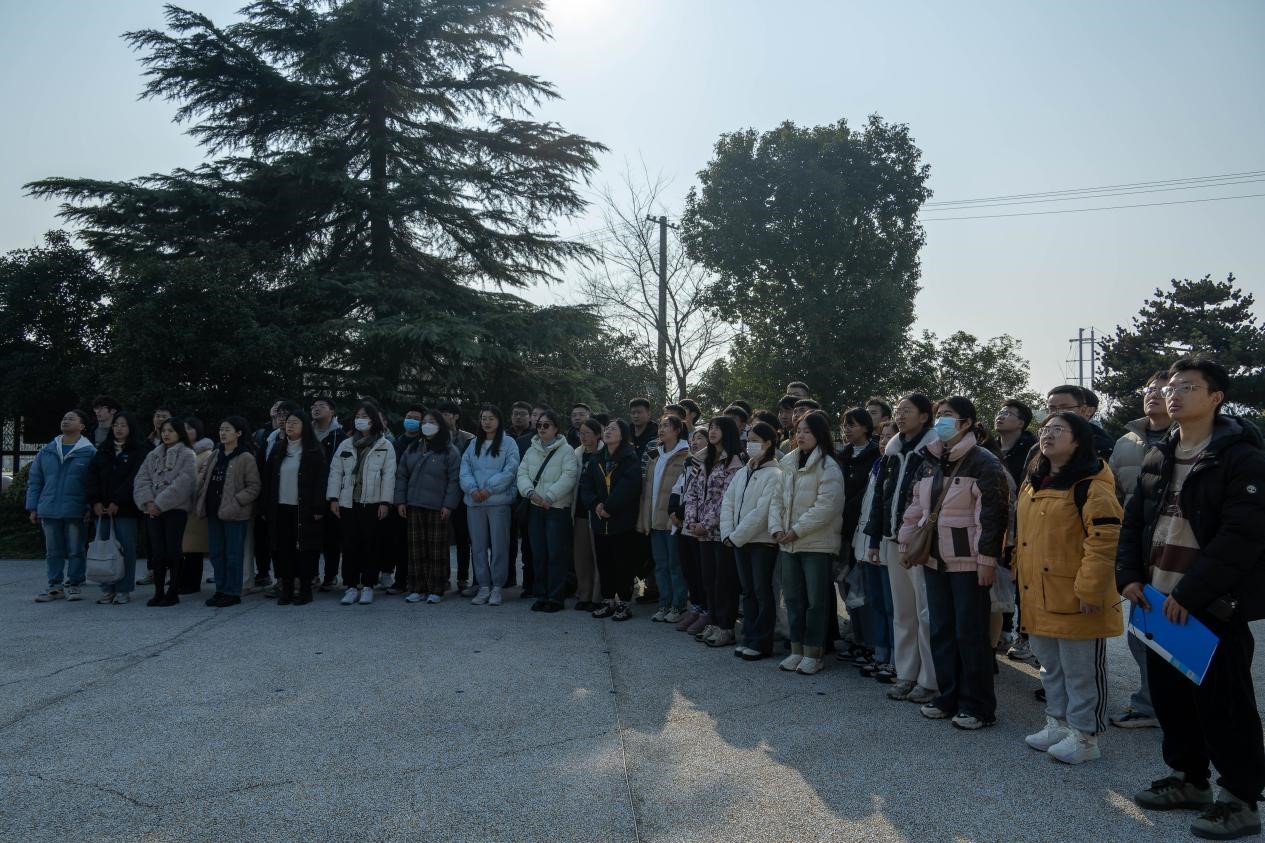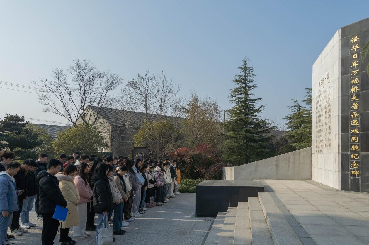 在学院2022级研究生辅导员陈骏老师的带领下,两支部党员乘坐校车前往扬州市侵华日军万福桥遇难同胞纪念碑举行悼念活动,共同铭记历史、缅怀先烈和遇难同胞,激励大家不忘国耻,珍爱和平,奋发图强,振兴中华。在奏唱《中华人民共和国国歌》后,陈骏老师向大家介绍了纪念碑的相关背景和情况,全体人员向大屠杀中的遇难同胞肃立默哀。随后,大家认真瞻仰纪念碑并绕纪念碑一周,表示深切哀悼,感受历史的沉重和战争的残酷,体会和平的来之不易,进一步激发爱国热情,更加坚定为实现中华民族伟大复兴而努力奋斗的决心。