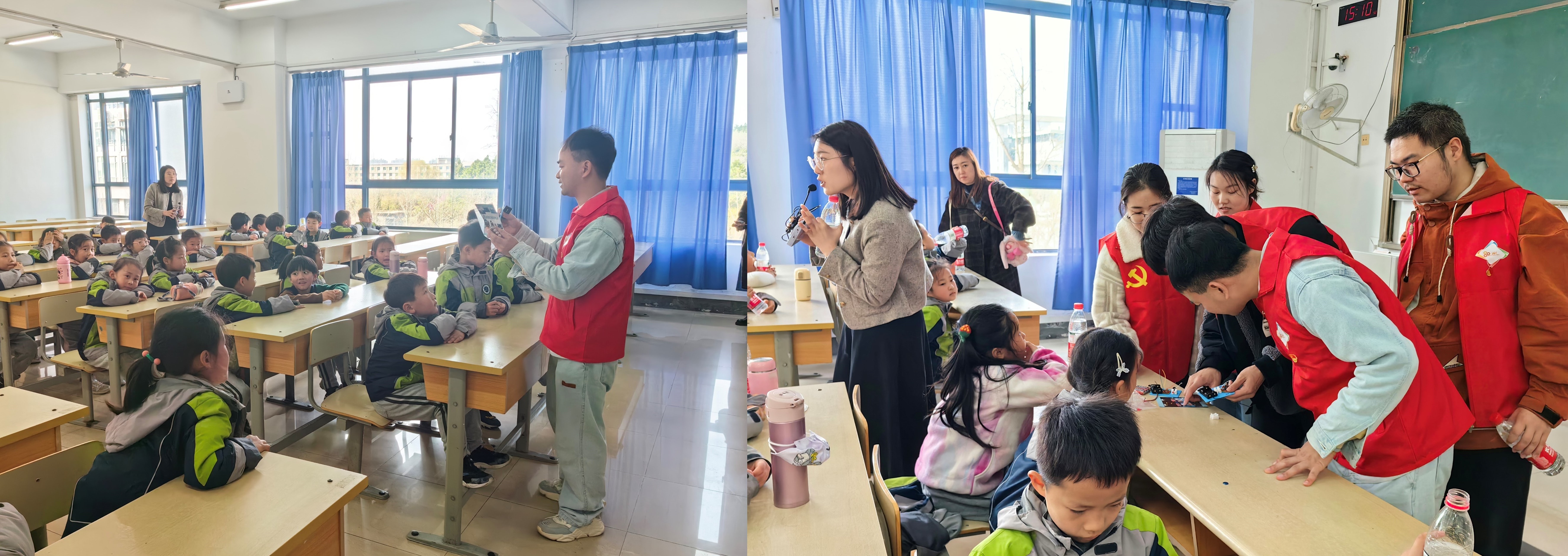 最后,博士生党支部书记方栋为小学生们上了一堂“科学手工课”,讲解无线电发报机的收发原理并引导学习无线遥控板的线路连接,意在使小学生们在制作过程中积极动手动脑,启发创新思维,提高对知识的渴求和学习兴趣,点燃发明灵感,造就“小发明家”;此外,进一步激发和巩固小学生们对邮政和通信技术的兴趣,厚植南邮红色基因。