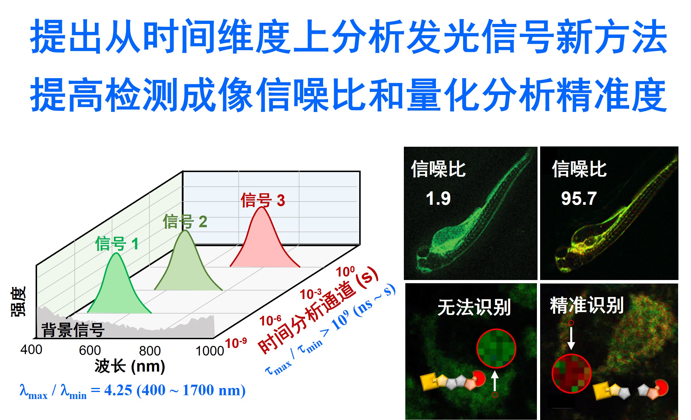 项目针对生物医学光学传感与成像领域中,常规荧光探针在生物成像中检测精确度低和成像信噪比低的难题,发展新型磷光探针和检测成像新技术,取得了原创性突破。通过揭示激发态调控规律,提出磷光材料激发态多维度调控新策略,在国际上引领了双发射磷光材料的开发,为生物检测与成像技术的突破提供了重要理论基础。进一步,利用其磷光波长可调以及发光寿命长的优势,发展了磷光比率探针新体系和时间分辨发光生物成像新技术,有效解决了常规荧光探针在生物成像中检测精确度低和成像信噪比低的难题,为高精确度检测和高信噪比成像提供了高效的解决方案,具有重大经济和应用价值。本项目共发表高质量论文53篇,10篇代表性论文分别发表在Nat Commun、J Am Chem Soc、Angew Chem Int Ed、Adv Mater等国内外权威期刊上,被众多知名学者在SCI期刊上他引1500余次,授权中国发明专利20件。这些成果对我国发展具有自主知识产权的新材料和生物诊疗技术具有重要意义。
