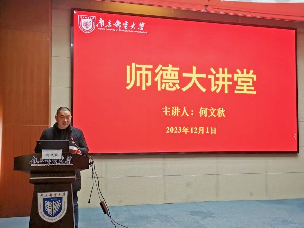 为落实好教师职业道德规范,讲好师德故事,引导教师崇德修身,潜心育人。12月1日下午,腐漫画 党委举办“师德大讲堂”活动,本次活动邀请江苏省陶行知纪念馆馆长何文秋做题为“学习陶行知教育思想 做新时代大先生”专题报告。讲座由腐漫画 党委书记高志华主持。学院党委副书记吕蔷蔷、副院长仪明东、副院长凌海峰及师生代表参加了本次报告会。