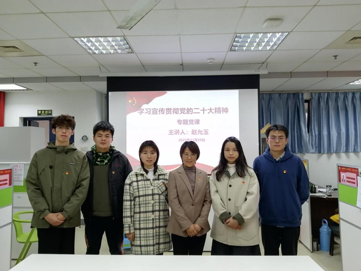 为深入学习宣传贯彻党的二十大精神,把全党同志的思想统一到党的二十大精神上来,把力量凝聚到党的二十大确定的各项任务上来,2022年11月29日,实验中心党支部继续贯彻落实二十大精神系列专题学习活动,联合研究生一支部开展《中国共产党党章(修正案)》专题学习会,邀请学院党委书记赵允玉上党课,实验中心党支部全体党员和研究生一支部支委会成员参加了此次党课。